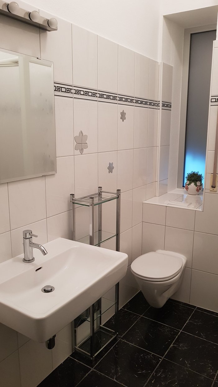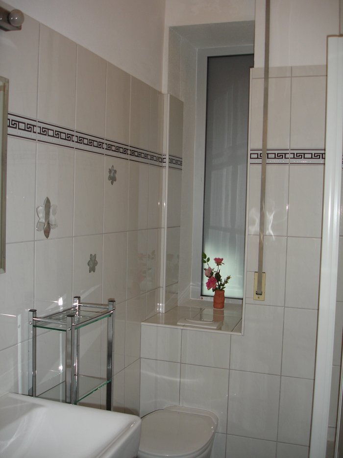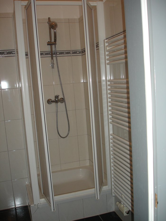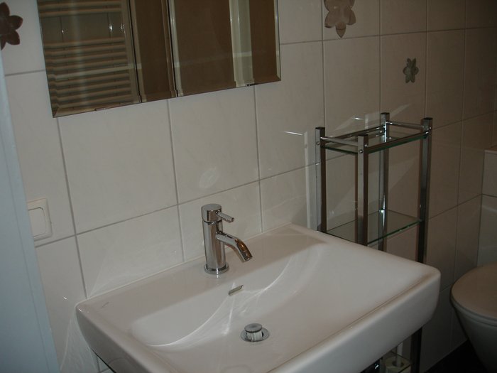 Im Schlafzimmer gibt es einen dreiteiligen Kasten , das Badezimmer ist voll ausgestattet ebenso die Küche mit Kühlschrank, E-Herd , Mikrowelle und Geschirrspüler.
